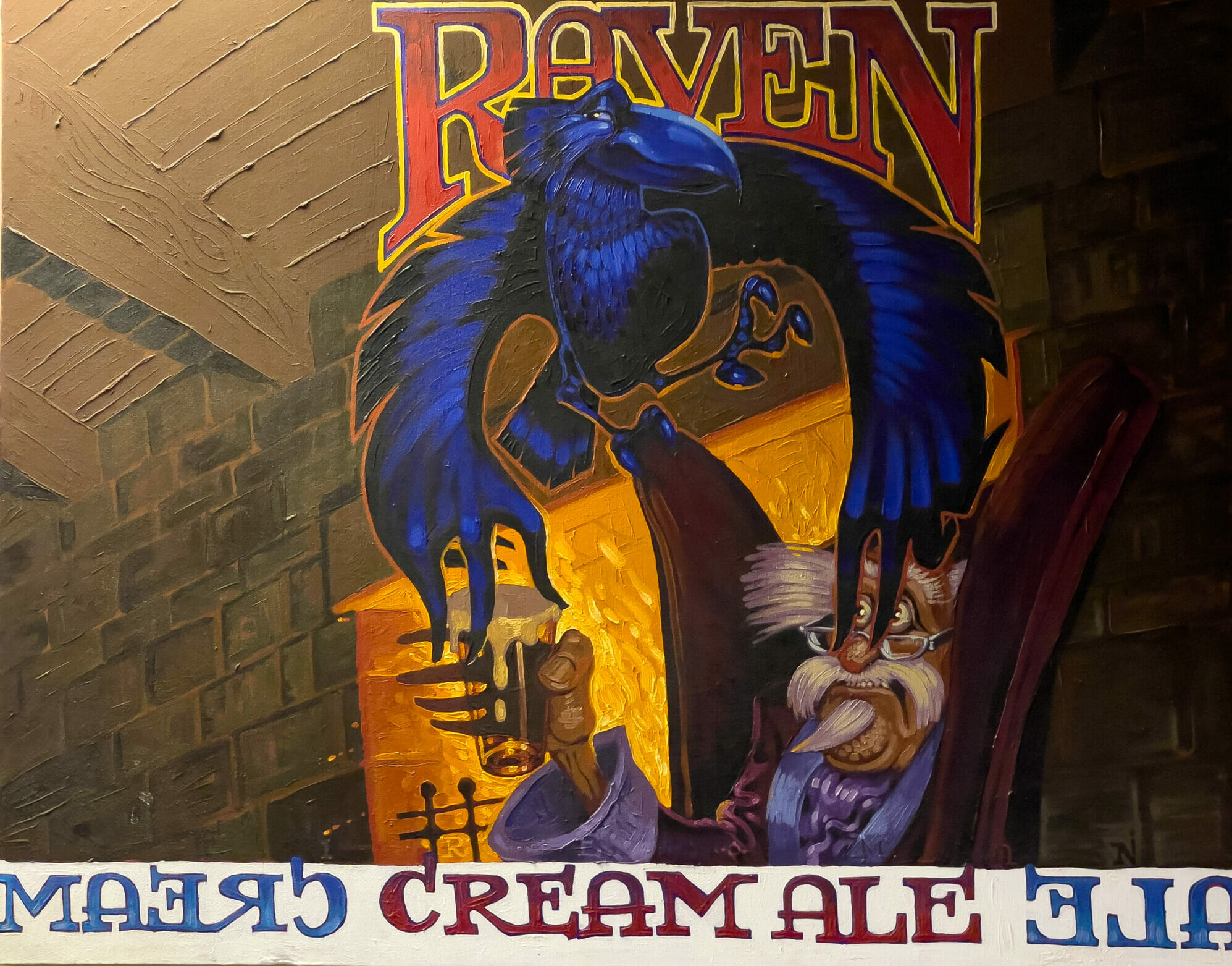 With Love Rollercoaster on the stereo, fresh-hopped beer and a jerk chicken pizza in front of us, classic LPs on the ceiling above us, and a taxidermist’s finest hour in the form of a spread-winged raven behind us at the bar, Benson and I chatted about the brewery’s sore spots and soar spots.