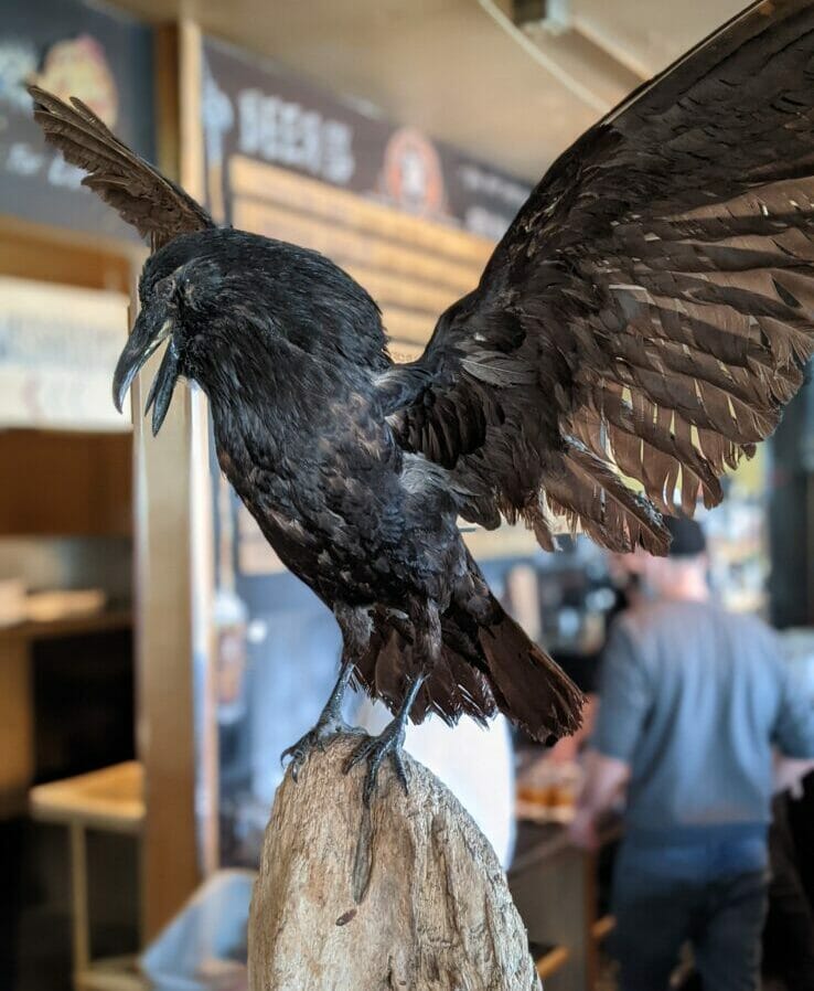 The bar — guarded by a stuffed raven — has a dozen taps, representing six core beers and filled out with experimental or seasonal brews and the occasional cider or guest tap. Benson acknowledges that the one-offs and specialty beers drive a lot of return business, so the brew team and kitchen team are given free rein to experiment and develop new recipes. A dill pickle gose might not be for everyone’s tastes, but it’ll certainly grab your attention.