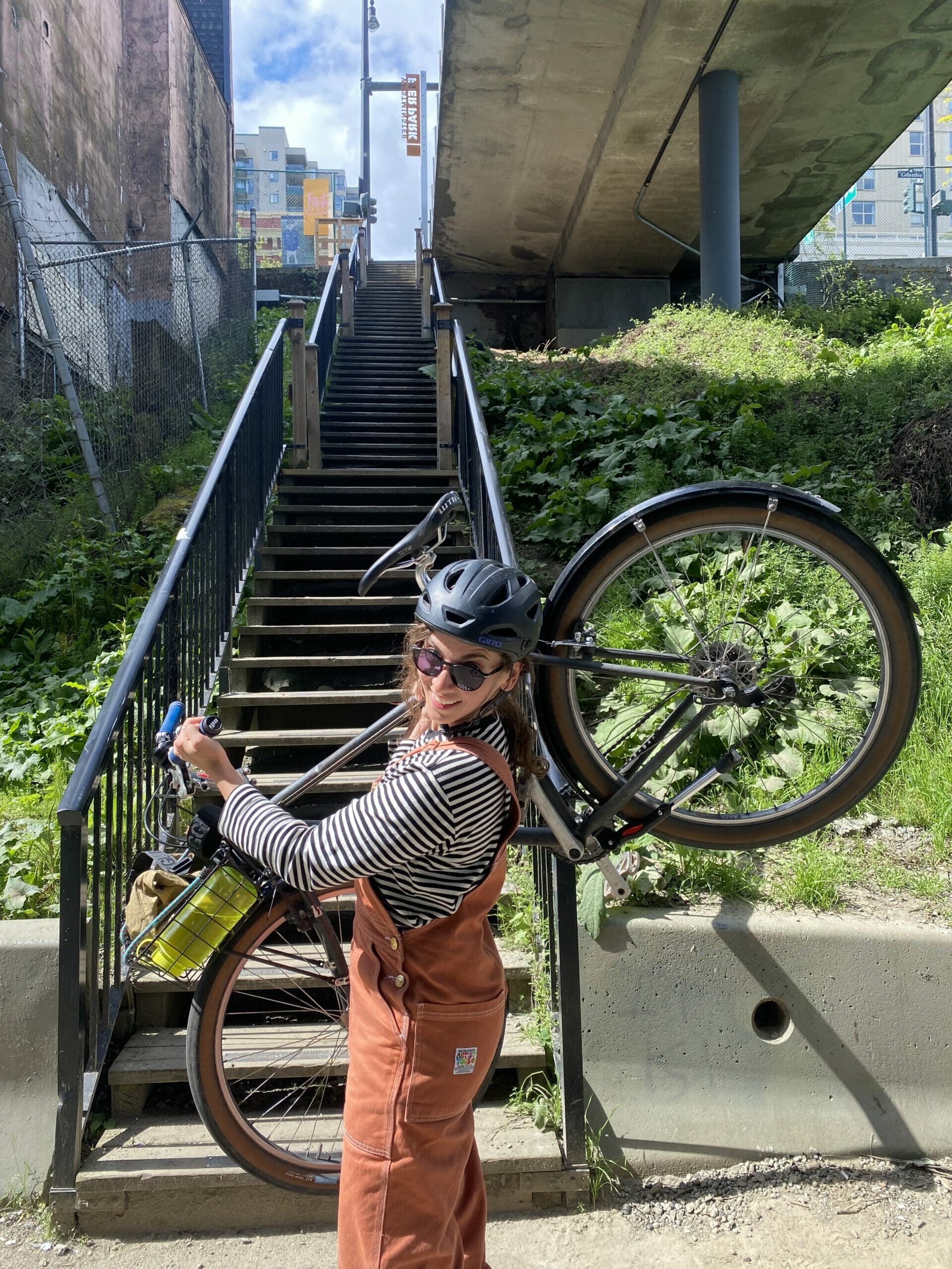 Unfortunately, the bike path that Google recommended did not exist due to the construction, and in order to avoid backtracking, we ended up hiking our bikes up a set of stairs to get to Columbia Street
