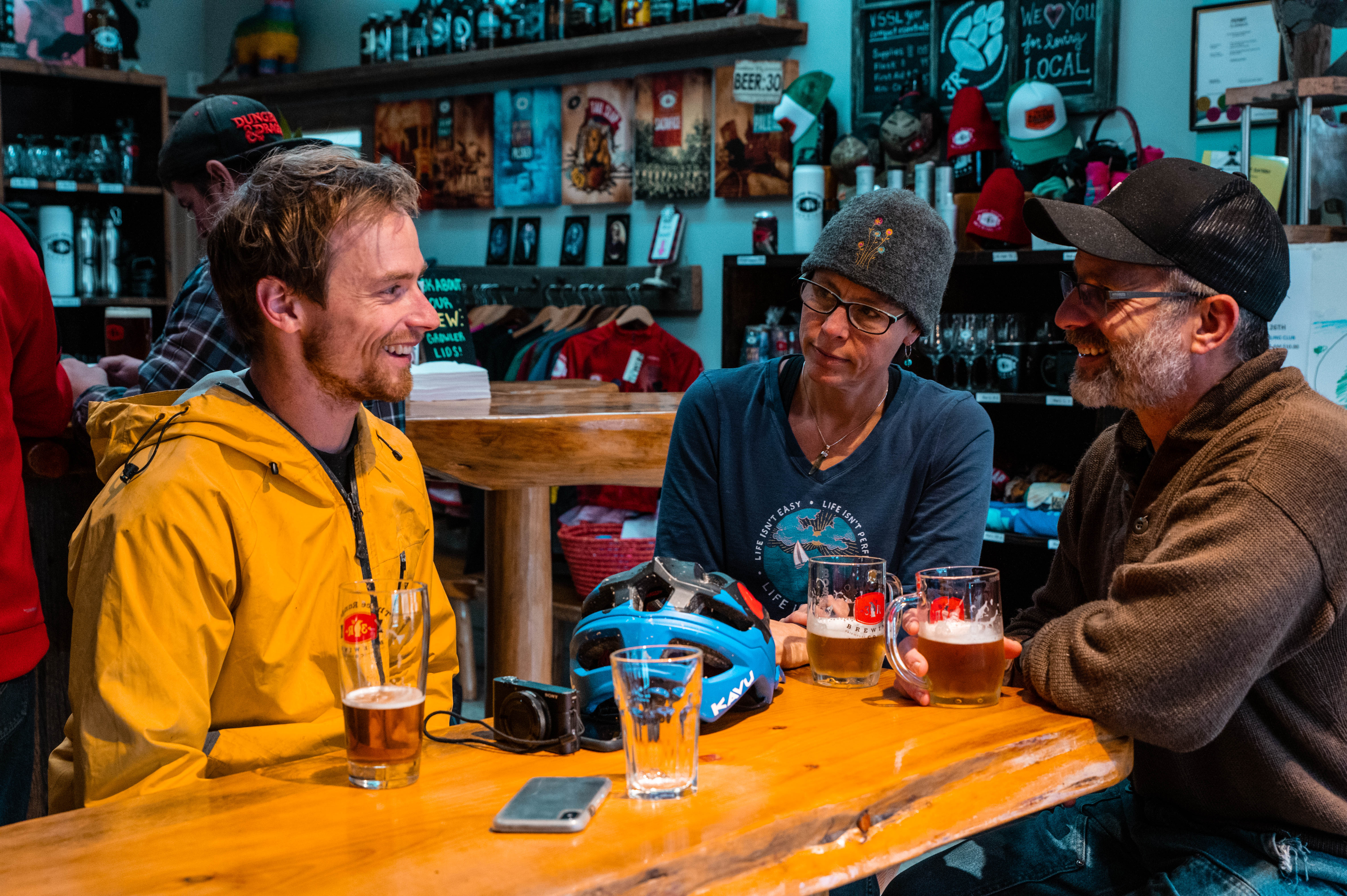 Once the day was winding down, our bodies were beat and our bikes were completely caked in mud. I gave Dave from Bulkley Valley Brewery a ring and told him we were coming. We rolled up to the building and saw him waiting for us. Dave sported a giant smile, beers in hand, and a hose in the back for washing off bikes. This was legendary! I then sampled some of the beers, we shared riding stories together, and before I knew it … a couple hours had passed and Dave had dinner being delivered to us. Out of all the breweries we visited, this place was my favourite. The genuine connection we built was unforgettable.