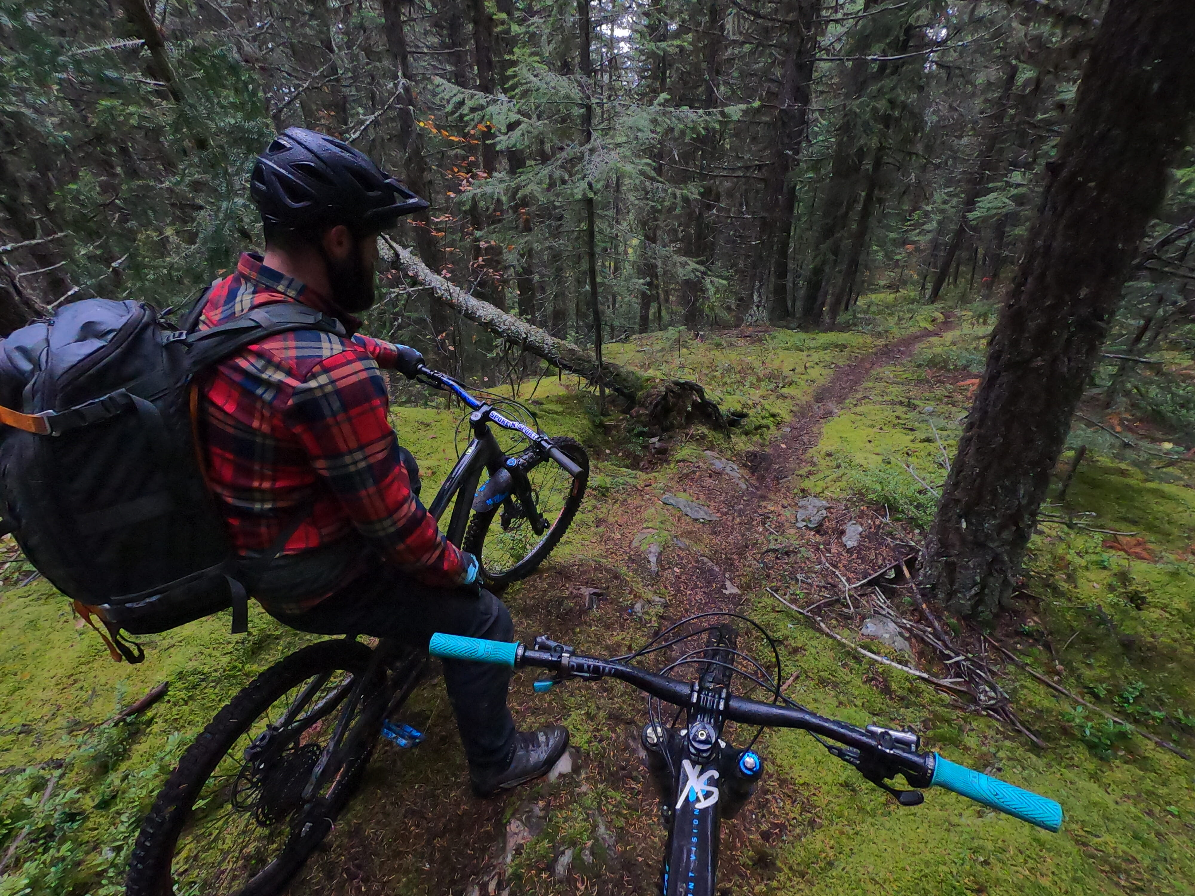 The final spot was Quesnel, where we linked up with the Gold Rush Cycling Club and let them know we wanted the most gnarly stuff we could find in just a few short hours before we had to fly home. Local trail directors, John and Chris, took the lead and gave us the biggest surprise of the trip: a steep, slippery, rocky, terrifying line called “Rockasaurus.” In the dry it would have been a challenge for most advanced riders, but in the snow, we were on our toes. The beautifully thick moss and flow sections mixed with advanced technical was such a thrill. I got to the bottom shaking for more.