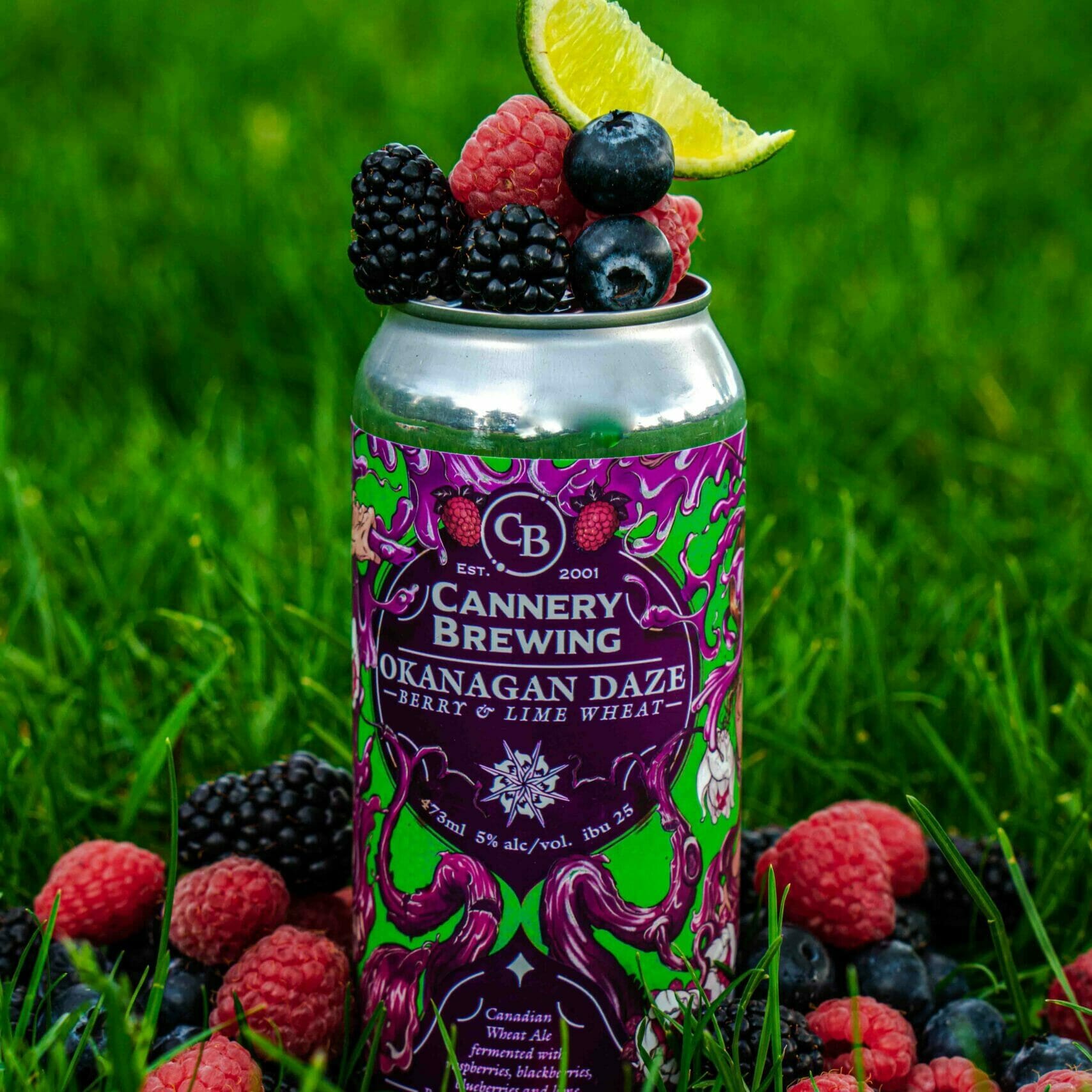 • Okanagan Daze Berry & Lime Wheat Ale (5% ABV | 25 IBU) This new version of Okanagan Daze is fermented with raspberries, blueberries, blackberries and lime.