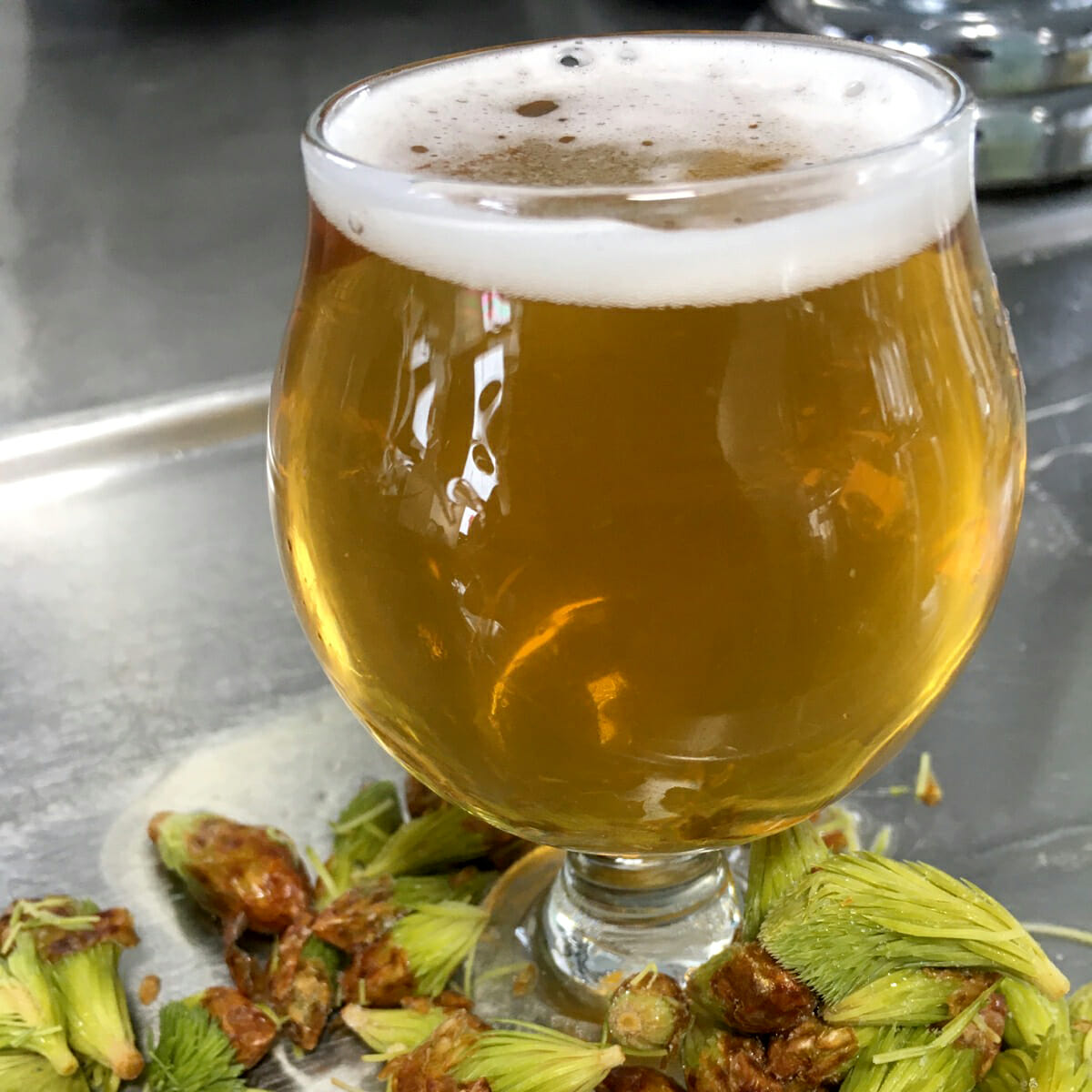 This full-bodied beer was dry hopped with Simcoe for a big tropical fruity aroma.