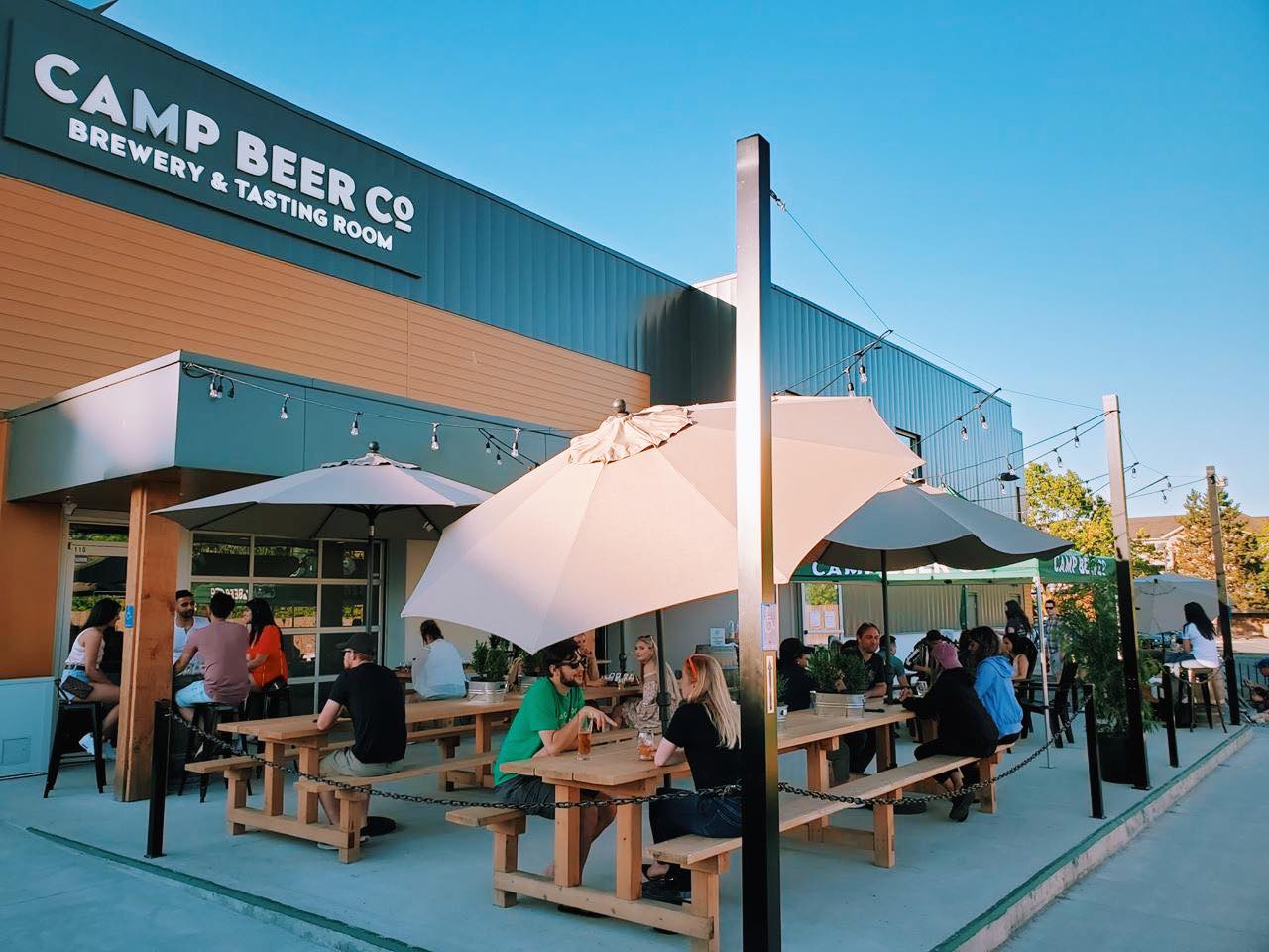 Camp Beer Co. has their summertime beerground ready for campers. Find their patio setup in Langley for more fresh beer.