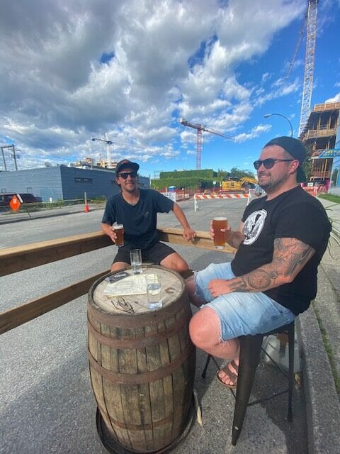 R&B Brewing has their setup ready for outdoor sits and sips! Find fresh ale, snacks, and patio rays at this East Vancouver establishment.